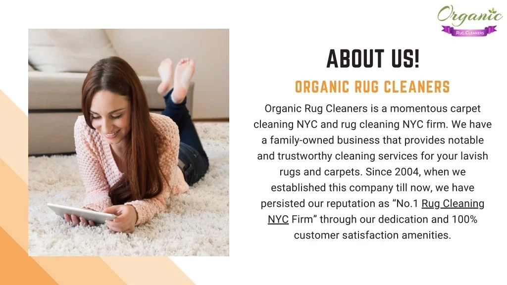 ABOUT US! ORGANIC RUG CLEANERS Organic Rug Cleaners is a momentous carpet cleaning NYC and rug cleaning NYC firm. We have a family-owned business that provides notable and trustworthy cleaning services for your lavish rugs and carpets. Since 2004, when we established this company till now, we have persisted our reputation as “No.1 Rug Cleaning NYC Firm” through our dedication and 100% customer satisfaction amenities.
