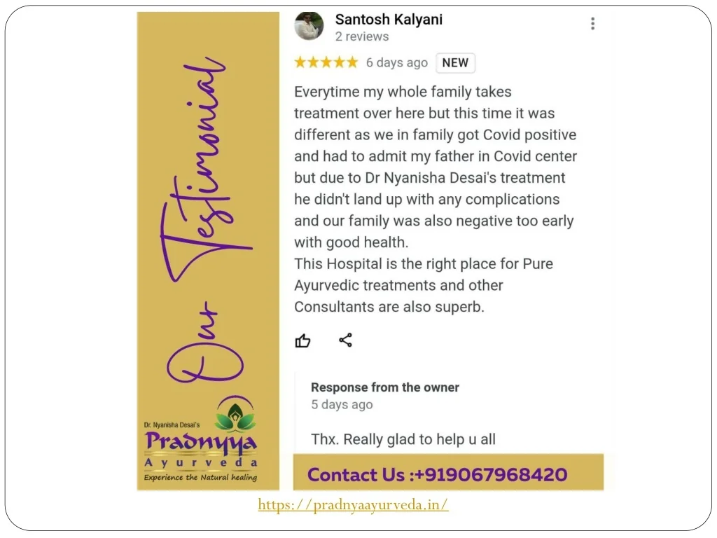 We all know Covid-19 cases increasing with serious results day by day. Just one and half year old disease destroying many lives and we are fighting here which "pathy" is useful and effective for Covid - 19. Everyone is experimenting for medication to destroy Covid 19 as this is also new and challenging for health organisations, then why not include our indian traditional Ayurveda techniques to save lives. Now it's high time to spread awareness about Ayurveda along with other pathy medicines as we have got many positive results from our patients. Ayurvedic medicines FOR AFTER and BEFORE Covid t
