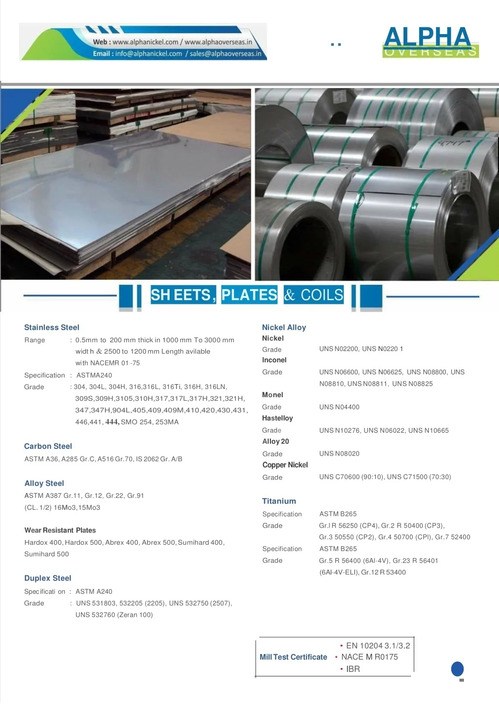 ALPHA AN ISO 9001:2015 Certified Co. •Stainless Steel • Duplex Steel • Alloys Steel • Carbon Steel • Nickel Alloys • Copper Nickel