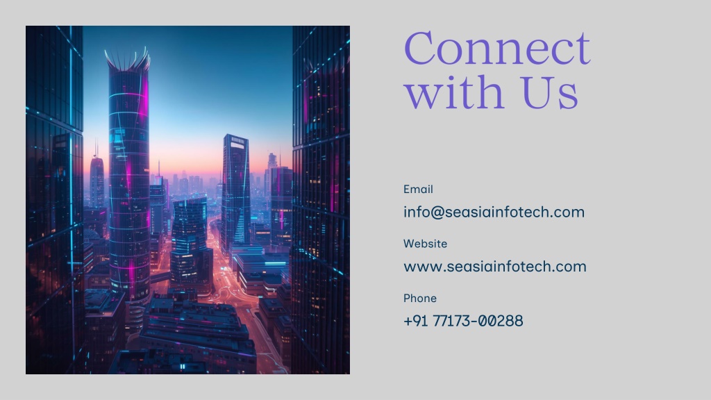 7. Email • info@seasiainfotech.com • Connect with Us • Website • www.seasiainfotech.com • Phone • +91 77173-00288