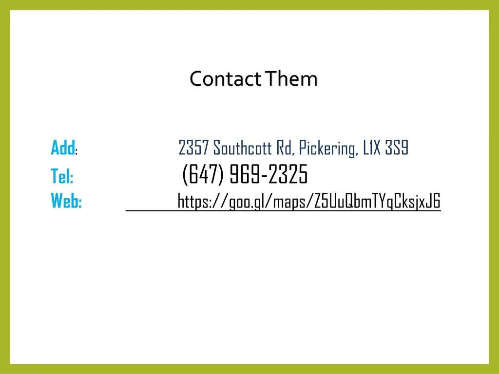 Contact Them Add: 2357 Southcott Rd, Pickering, L1X 3S9 Tel: (647) 969-2325 Web:https://goo.gl/maps/Z5UuQbmTYqCksjxJ6