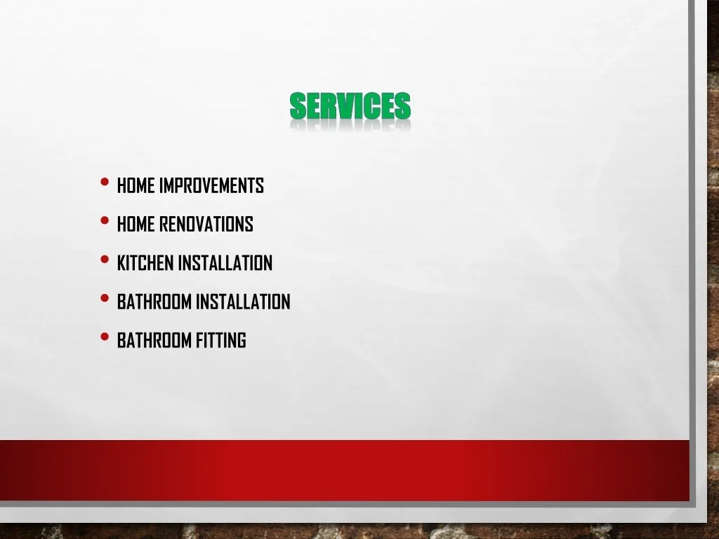SERVICES • Home Improvements • Home Renovations • Kitchen Installation • Bathroom Installation • Bathroom Fitting