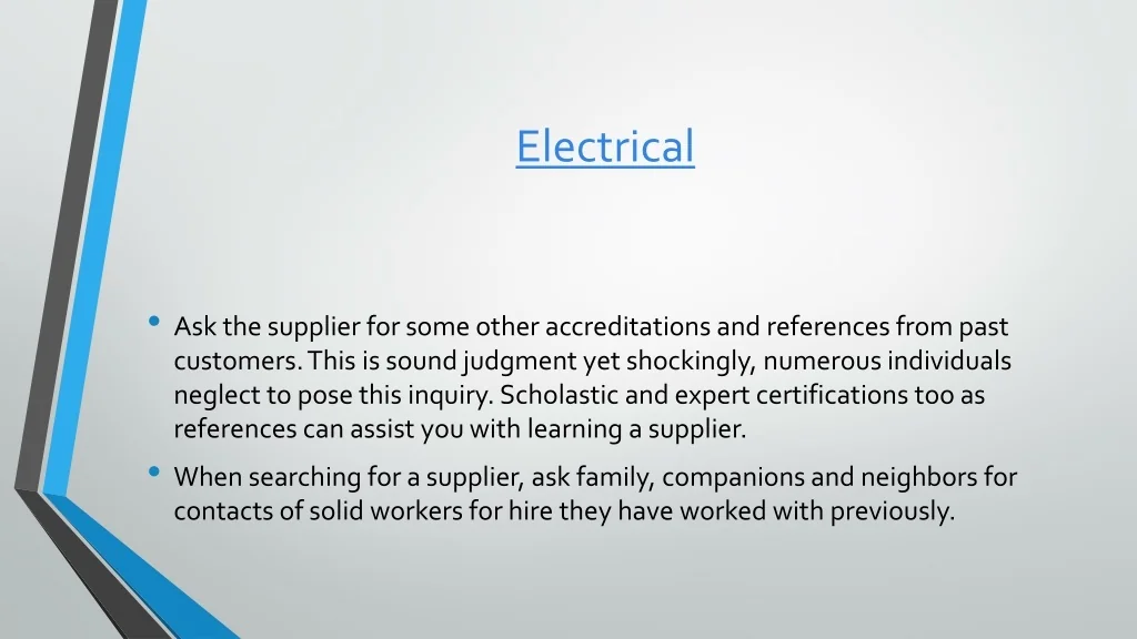 Electrical Ask the supplier for some other accreditations and references from past customers. This is sound judgment yet shockingly, numerous individuals neglect to pose this inquiry. Scholastic and expert certifications too as references can assist you with learning a supplier. When searching for a supplier, ask family, companions and neighbors for contacts of solid workers for hire they have worked with previously.