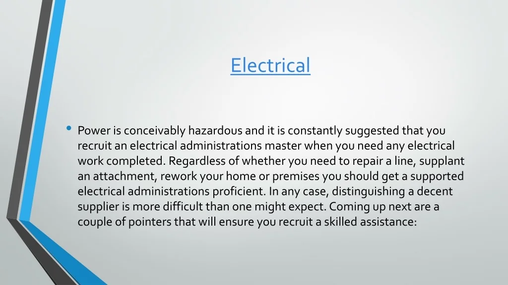 Electrical Power is conceivably hazardous and it is constantly suggested that you recruit an electrical administrations master when you need any electrical work completed. Regardless of whether you need to repair a line, supplant an attachment, rework your home or premises you should get a supported electrical administrations proficient. In any case, distinguishing a decent supplier is more difficult than one might expect. Coming up next are a couple of pointers that will ensure you recruit a skilled assistance: