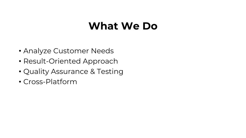 What We Do • Analyze Customer Needs • Result-Oriented Approach • Quality Assurance & Testing • Cross-Platform