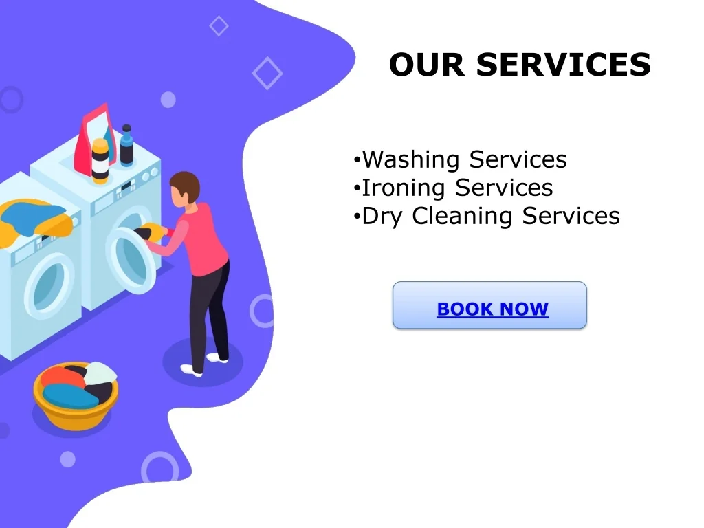 OUR SERVICES • Washing Services • Ironing Services • Dry Cleaning Services BOOK NOW