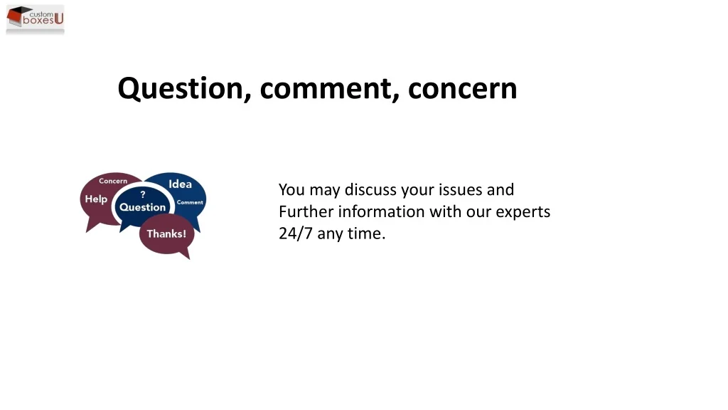 Question, comment, concern You may discuss your issues and Further information with our experts 24/7 any time.