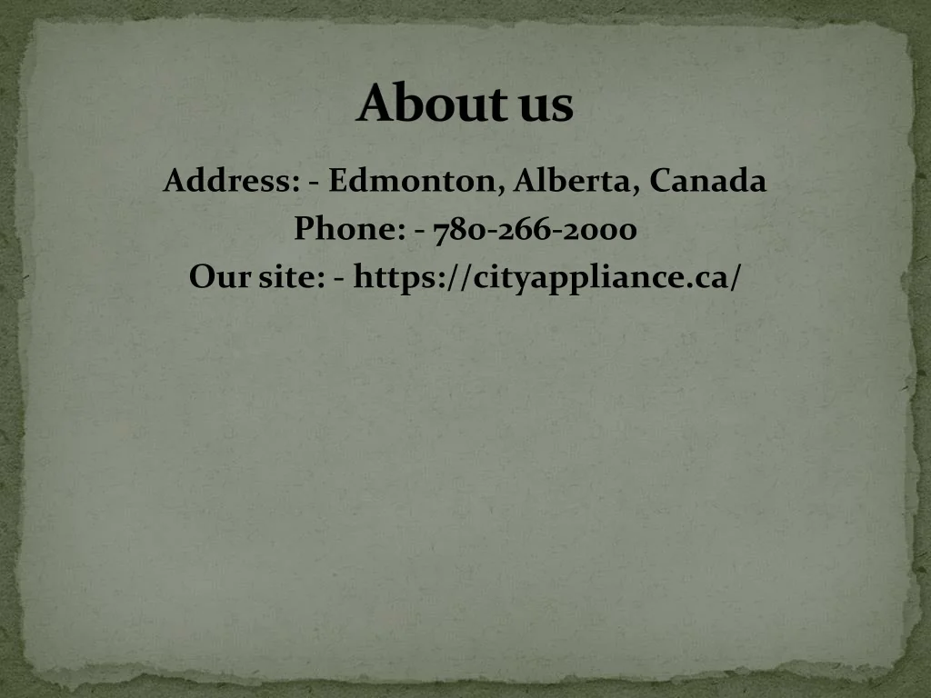 About us Address: - Edmonton, Alberta, Canada Phone: - 780-266-2000 Our site: - https://cityappliance.ca/