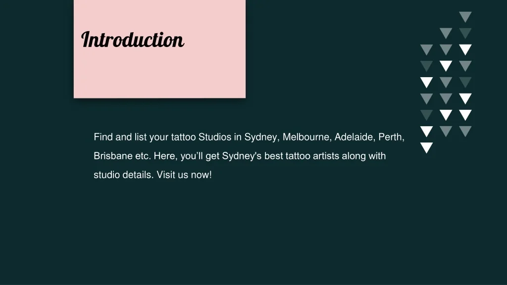 Introduction Find and list your tattoo Studios in Sydney, Melbourne, Adelaide, Perth, Brisbane etc. Here, you’ll get Sydney's best tattoo artists along with studio details. Visit us now!