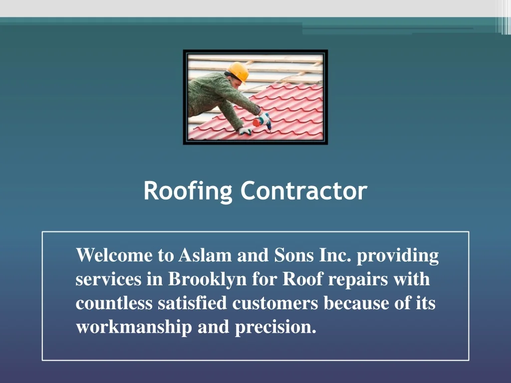Roofing Contractor Welcome to Aslam and Sons Inc. providing services in Brooklyn for Roof repairs withcountless satisfied customers because of its workmanship and precision.