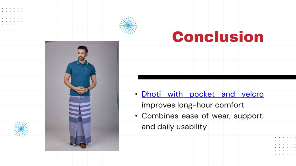 Conclusion • Dhoti with pocket and velcro improves long-hour comfort • Combines ease of wear, support, and daily usability