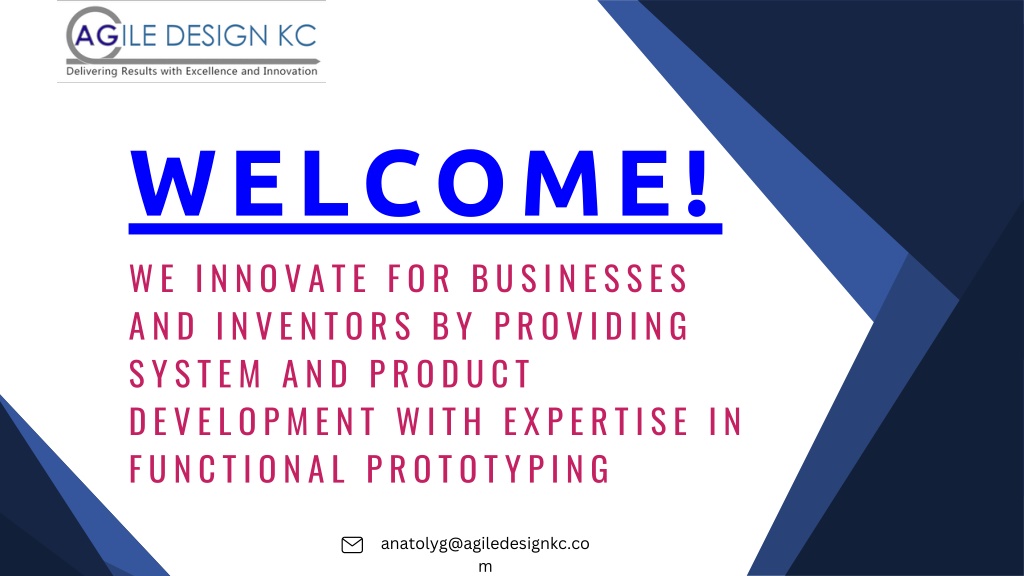 WELCOME! WE INNOVATE FOR BUSINESSES AND INVENTORS BY PROVIDING SYSTEM AND PRODUCT DEVELOPMENT WITH EXPERTISE IN FUNCTIONAL PROTOTYPING anatolyg@agiledesignkc.com