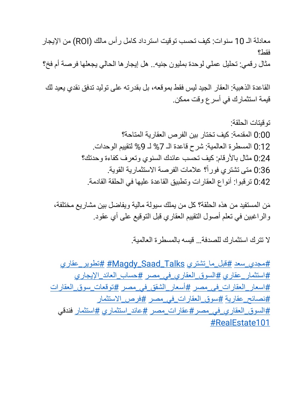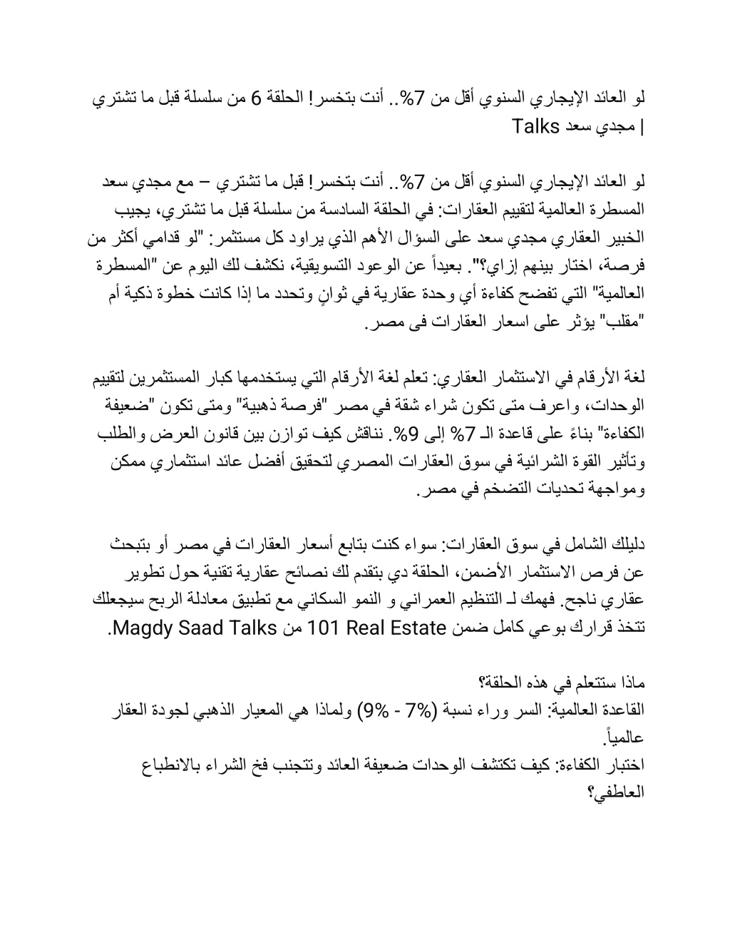 يرتشت ام 6 رسختب ! تنأ ..% 7 يراجيلإا Talks ول لبق ةلسلس نم ةقلحلا نم لقأ يونسلا دئاعلا يدجم | دعس يدجم بيجي ،يرتشت يمادق رثكأ " ةرطسملا ةيكذ مأ – ام ةلسلس لك فشكن ،ةيقيوستلا ددحتو ٍناوث ام اذإ رسختب ! ةسداسلا نم يذلا دواري ..% ةقلحلا مهلأا دوعولا ةيراقع يف رصم . تنأ 7 يف يراجيلإا ةيملاعلا مييقتل يدجم مهنيب حضفت ةءافك ىلع راعسا تاراقعلا ول دعس يرتشت لبق ام رمثتسم " : كل مويلا تناك ةوطخ عم لبق نم : لقأ يونسلا دعس دئاعلا ةرطسملا ريبخلا تاراقعلا ىلع نم ول لاؤسلا نع ًاديعب ."؟يازإ ةدحو ىف يراقعلا راتخا ،ةصرف " يتلا " رثؤي نع يأ ةيملاعلا بلقم " مييقتل يراقعلا : ملعت ءارش ةقش .% شقانن يرصملا ةغل يف ةغل نيرمثتسملا نوكت " ةفيعض ضرعلا بلطلاو نكمم رابك ىتمو اهمدختسي ةيبهذ " نيب نوناق لضفأ دئاع ماقرلأا رصم " فيك قيقحتل يتلا رامثتسلاا ىتم ةدعاق ـلا 7 % ىلإ 9 قوس تاراقعلا يف رصم . يف ماقرلأا ةصرف نزاوت نوكت فرعاو ،تادحولا ىلع ًءانب ةوقلا ةيئارشلا تايدحت مخضتلا " ةءافكلا ريثأتو ةهجاومو يرامثتسا يف ثحبتب ريوطت كلعجيس Magdy Saad Talks . وأ تاراقعلا : ةقلحلا ،نمضلأا ينارمعلا و ومنلا Real Estate ءاوس يد كليلد نع يراقع ذختت رصم لوح تاراقعلا ةيراقع ةينقت قيبطت ةلداعم يف راعسأ حئاصن يناكسلا عم 101 نم عباتب كل تنك قوس رامثتسلاا كمهف ـل ميظنتلا لماك نمض يف لماشلا صرف حجان كرارق مدقتب حبرلا . يعوب ملعتتس ةيملاعلا : ؟ةقلحلا ءارو هذه يف اذام راقعلا يبهذلا 9% ) - 7% ةبسن ( رسلا ةدوجل رايعملا يه اذاملو ةدعاقلا .ًايملاع رابتخا ؟يفطاعلا ةءافكلا : عابطنلااب ءارشلا خف بنجتتو دئاعلا ةفيعض تادحولا فشتكت فيك