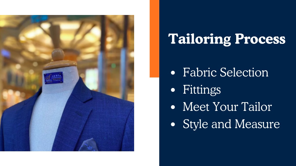 Style and Measure Engage in a collaborative design process with our expert tailors. We take precise measurements and consider your body shape and garment purpose to ensure a perfect fit. Customize every detail, from cut and lining to buttons and embroidery, for a truly bespoke experience.