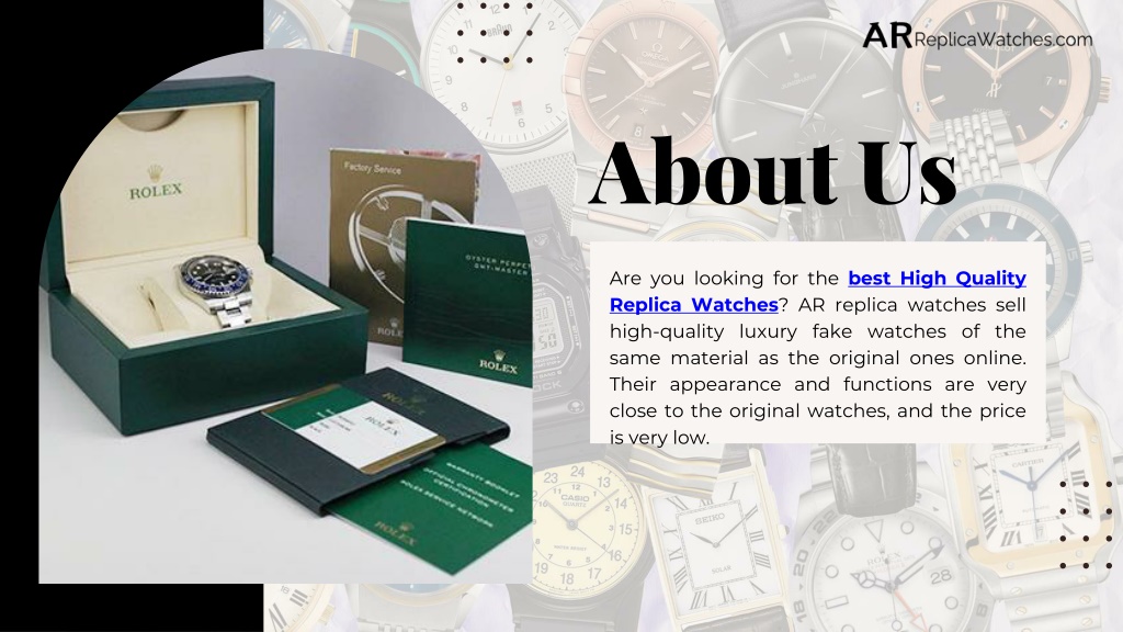 About Us Are you looking for the best High Quality Replica Watches? AR replica watches sell high-quality luxury fake watches of the same material as the original ones online. Their appearance and functions are very close to the original watches, and the price is very low.