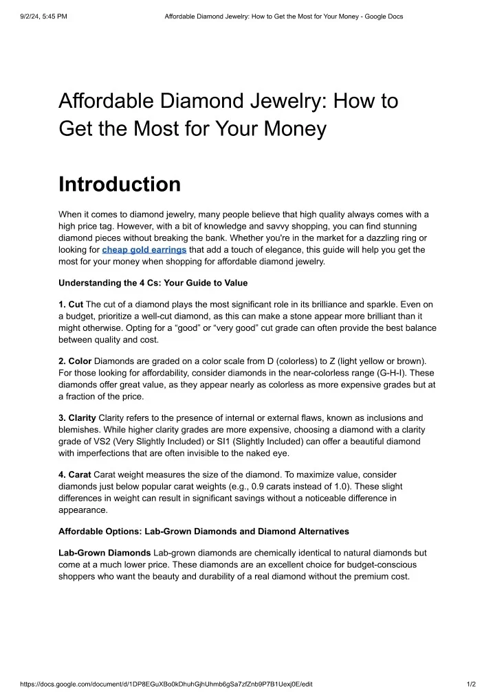 When it comes to diamond jewelry, many people believe that high quality always comes with a high price tag. However, with a bit of knowledge and savvy shopping, you can find stunning diamond pieces without breaking the bank. Whether you're in the market for a dazzling ring or looking for cheap gold earrings that add a touch of elegance, this guide will help you get the most for your money when shopping for affordable diamond jewelry.<br><br>
