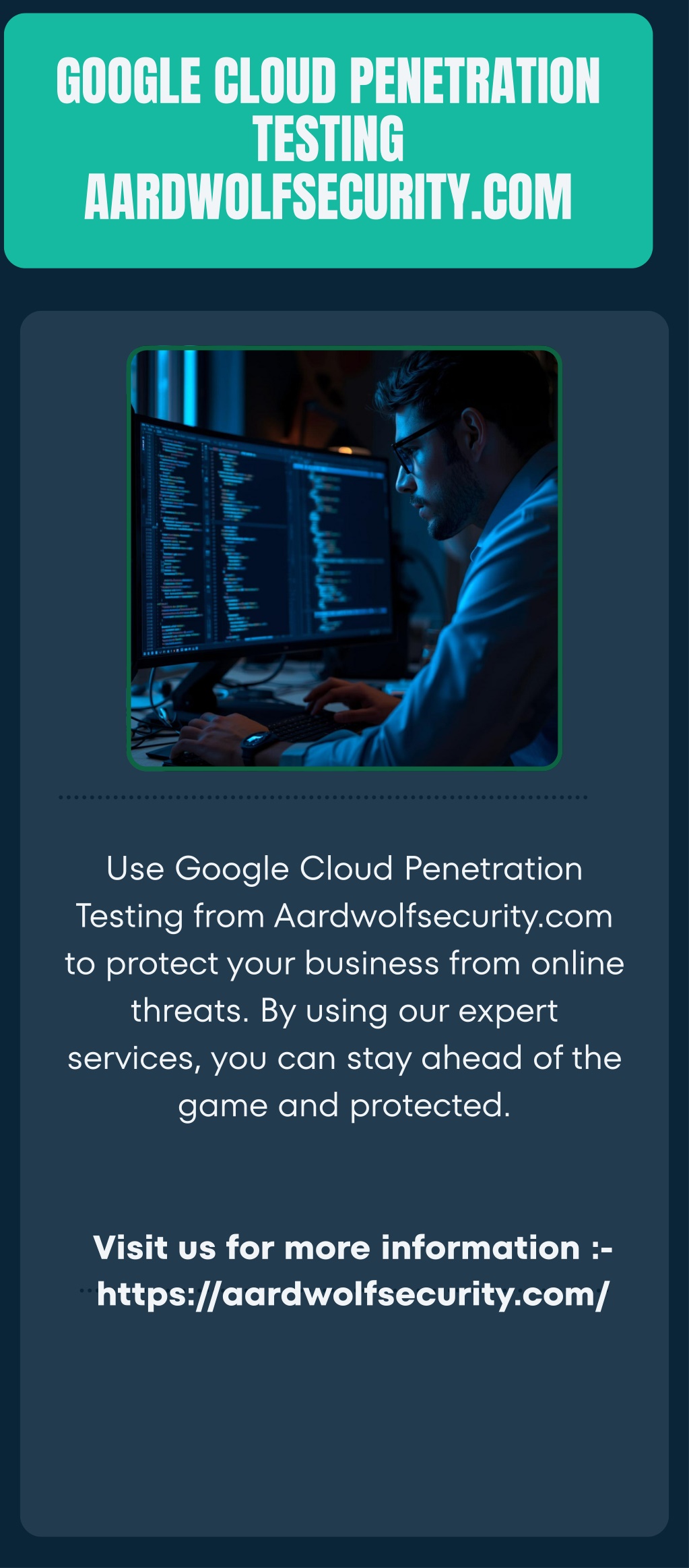 1. GOOGLE CLOUD PENETRATION TESTING AARDWOLFSECURITY.COM Use Google Cloud Penetration Testing from Aardwolfsecurity.com to protect your business from online threats. By using our expert services, you can stay ahead of the game and protected. Visit us for more information :- https://aardwolfsecurity.com/