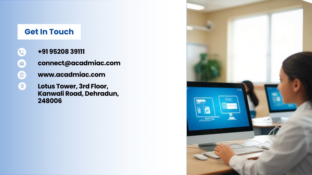 Get In Touch +91 95208 39111 connect@acadmiac.com www.acadmiac.com Lotus Tower, 3rd Floor, Kanwali Road, Dehradun, 248006