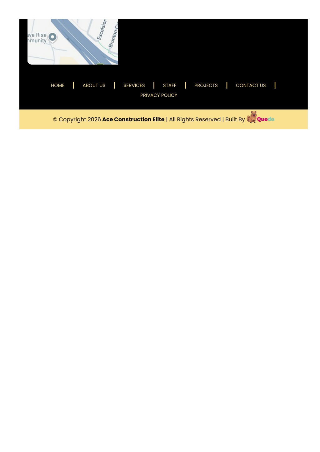 HOME ABOUT US SERVICES STAFF PROJECTS CONTACT US PRIVACY POLICY © Copyright 2026 Ace Construction Elite | All Rights Reserved | Built By
