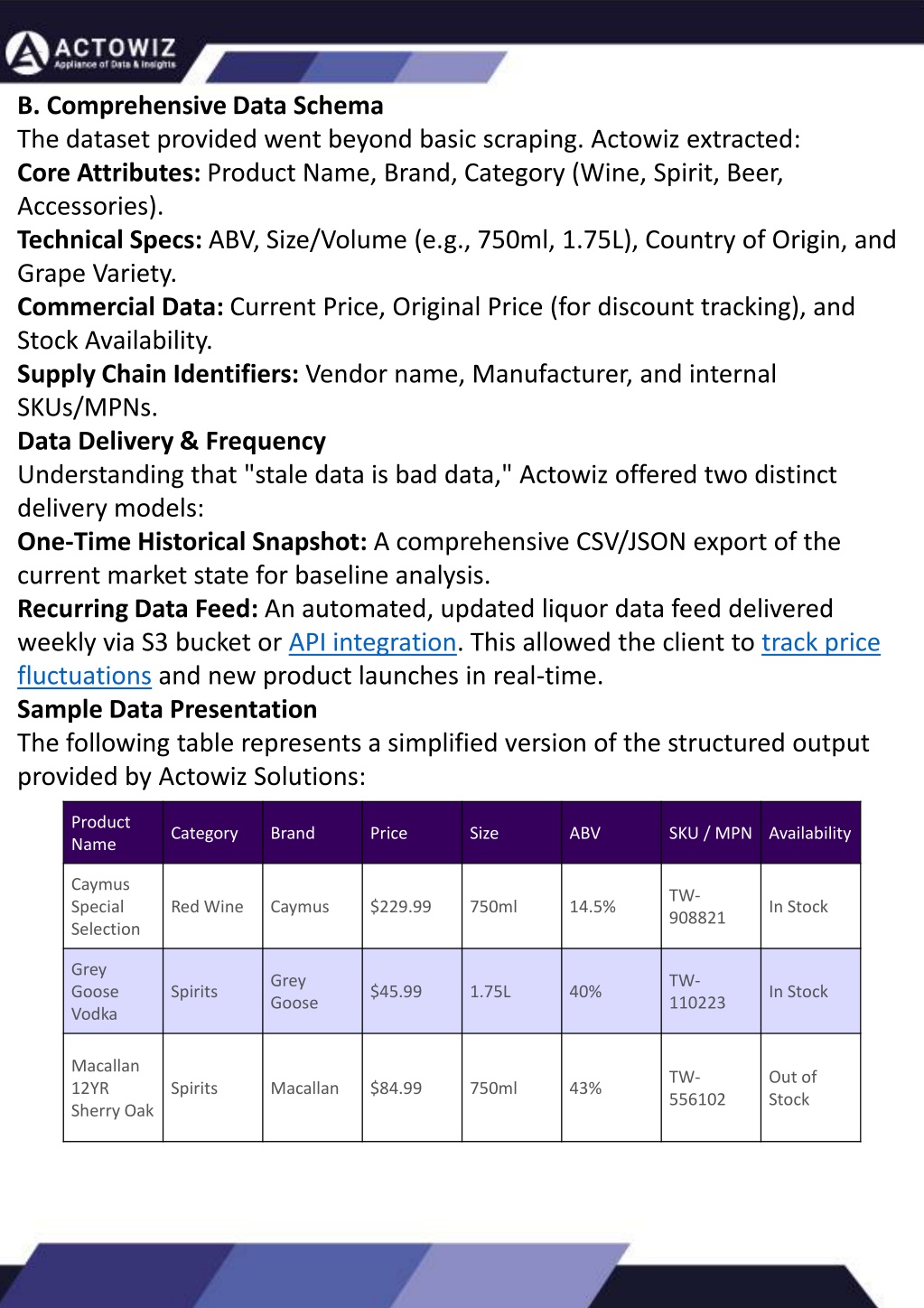 B. Comprehensive Data Schema The dataset provided went beyond basic scraping. Actowiz extracted: Core Attributes: Product Name, Brand, Category (Wine, Spirit, Beer, Accessories). Technical Specs: ABV, Size/Volume (e.g., 750ml, 1.75L), Country of Origin, and Grape Variety. Commercial Data: Current Price, Original Price (for discount tracking), and Stock Availability. Supply Chain Identifiers: Vendor name, Manufacturer, and internal SKUs/MPNs. Data Delivery & Frequency Understanding that "stale data is bad data," Actowiz offered two distinct delivery models: One-Time Historical Snapshot: A comprehensive CSV/JSON export of the current market state for baseline analysis. Recurring Data Feed: An automated, updated liquor data feed delivered weekly via S3 bucket or API integration. This allowed the client to track price fluctuations and new product launches in real-time. Sample Data Presentation The following table represents a simplified version of the structured output provided by Actowiz Solutions: Extracting Information from TripAdvisor: A Guide to Scraping Data from Hotels and Restaurants How to Effectively Use Competitor Price Trackers: Operational Guidance and Benefits How to Use Zomato API to Scrape Restaurant Data – A Detailed Guide What are Datasets? - A Comprehensive Guide Introduction Introduction This blog will provide a comprehensive overview of datasets, including their definition, different types of datasets, and strategies for maximizing the value of data. Leveraging the appropriate API makes scraping TripAdvisor on a large scale a straightforward task. You don't need to possess advanced computer skills to achieve this. Our comprehensive, step-by-step guide is designed to walk you through extracting data from TripAdvisor using a user-friendly web scraping tool. In the dynamic landscape of eCommerce, pricing strategy stands paramount, especially for digital storefronts. Modern consumers are discerning, often prioritizing price comparison as a pivotal step before purchasing. The allure of securing the best deals and most competitive prices drives this behavior. Consequently, a significant portion of online shoppers actively engage in price monitoring across various platforms. Recognizing this trend, online retailers must adeptly employ competitor price trackers to stay ahead. What is a Dataset? Introduction In the dynamic world of digital gastronomy, where culinary delights and dining experiences are increasingly explored and celebrated online, the demand for up-to-date restaurant data is insatiable. As food enthusiasts and businesses seek the latest insights into menus, reviews, and more, the Zomato API emerges as a powerful tool for scraping this invaluable information. TripAdvisor stands out as a powerhouse with an extensive database comprising over 8 million locations, 1 billion reviews, and support for 29 languages. As of 2022, when the cumulative reviews surpassed the one billion mark, it became evident that TripAdvisor's meticulous gaze would soon cover every restaurant, hotel, vacation rental, or attraction listing. By leveraging retail data scraping techniques, businesses can collect comprehensive retail data, offering insights into the broader market's pricing landscape. Such price intelligence empowers retailers to craft a robust pricing strategy, bolstering sales, enhancing profit margins, and fostering customer loyalty. Moreover, a data-driven eCommerce pricing approach ensures competitiveness, with dynamic pricing becoming increasingly prevalent. Unlocking the Potential: The Advantages of Scraping TripAdvisor Data Our comprehensive guide delves into the intricate art of utilizing the Zomato API to scrape restaurant data. Whether you're a restaurateur striving to understand your competitors, a food blogger searching for fresh content, or a data enthusiast eager to explore culinary trends, this guide will serve as your compass in the world of data extraction. In essence, utilizing a competent competitor price tracker facilitates effective pricing optimization and solidifies a retailer's position in the fiercely competitive eCommerce arena. Amidst TripAdvisor's vast sea of information lies a treasure trove awaiting extraction, analysis, and innovative presentation. For those in the tourism, hospitality, or travel sectors, harnessing TripAdvisor data proves invaluable for monitoring competitors and supporting strategic business decisions. The TripAdvisor Scraper facilitates seamless and rapid web scraping, offering the most straightforward route to consistently obtaining data at scale. This article delves into the myriad benefits of scraping TripAdvisor, shedding light on how this process can be initiated, including exploring the initial steps involving API utilization. Dive into the realm of data-driven insights with TripAdvisor scraping. We will navigate through the intricacies of Zomato Scraper, uncovering its capabilities to provide you with rich, real-time restaurant data. From scraping restaurant details to accessing customer reviews, our detailed guide ensures that you harness the full potential of this resource.