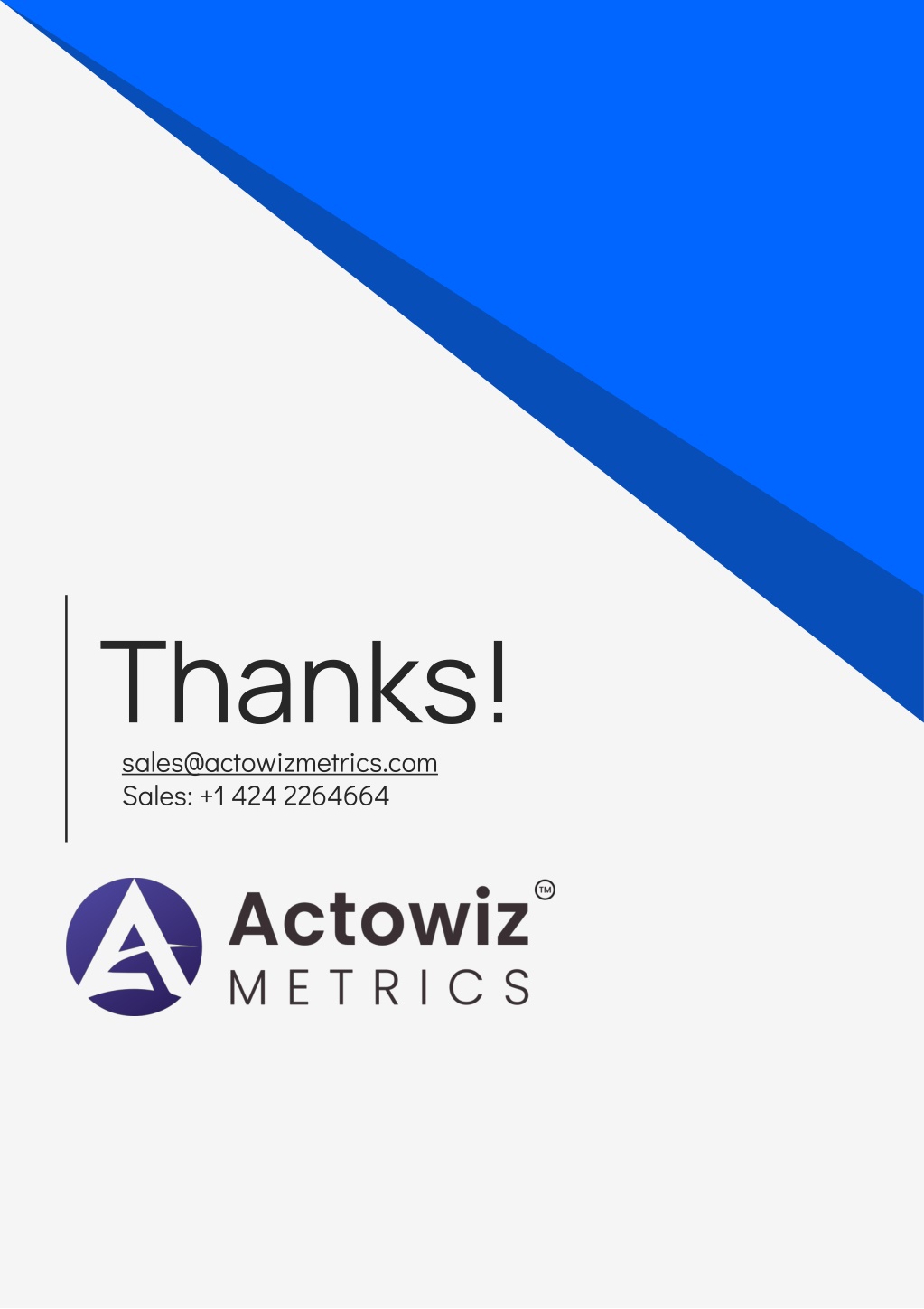 Thanks! sales@actowizmetrics.com Sales: +1 424 2264664 Slidesgo Slidesgo,and Freepik CREDITS: CREDITS: This presentation template was created by Slidesgo includes icons by Flaticon Flaticon Flaticon,and infographics & images by Freepik Freepik
