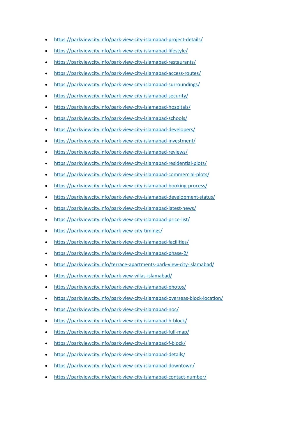 Park View City places a high priority on the security of its residents, with a comprehensive security system in place. Security: The society is equipped with modern security measures, including CCTV surveillance and a dedicated security team, ensuring a safe living environment Security. Surroundings: Located near key landmarks and surrounded by natural beauty, Park View City offers picturesque views and a serene environment, enhancing the living experience Surroundings. Accessibility and Future Projects Access Routes: The society is easily accessible via major routes, making it convenient for residents to commute to and from the city Access Routes. Future Projects: Park View City continues to expand with various future projects planned to enhance the community and provide additional facilities to residents Future Projects. Booking and Payment Plans Booking Process: The booking process in Park View City is straightforward, with clear guidelines to help investors secure their plots with ease Booking Process. Payment Plans: Flexible payment plans are available, allowing buyers to make convenient installments over time Installments. In conclusion, Park View City Islamabad stands out as a premier housing society offering a blend of luxury, convenience, and security. Whether you are looking for a place to call home or a profitable investment opportunity, Park View City has something to offer for everyone. For more detailed information and the latest updates, visit the official Park View City website. • https://parkviewcity.info/park-view-housing-society/ • https://parkviewcity.info/park-view-city-islamabad-facilities-updates/ • https://parkviewcity.info/house-for-sale-in-park-view-city-islamabad/ • https://parkviewcity.info/house-for-rent-in-park-view-city-islamabad/ • https://parkviewcity.info/park-view-city-islamabad-home-design/ • https://parkviewcity.info/park-view-city-islamabad-rental-income/ • https://parkviewcity.info/park-view-city-islamabad-plot-verification/ • https://parkviewcity.info/park-view-city-islamabad-future-projects/ • https://parkviewcity.info/park-view-city-islamabad-down-payment/ • https://parkviewcity.info/park-view-city-islamabad-installments/