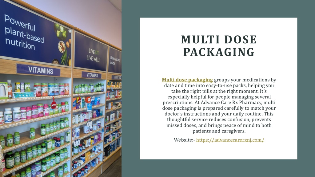 MULTI DOSE PACKAGING Multi dose packaging groups your medications by date and time into easy-to-use packs, helping you take the right pills at the right moment. It’s especially helpful for people managing several prescriptions. At Advance Care Rx Pharmacy, multi dose packaging is prepared carefully to match your doctor’s instructions and your daily routine. This thoughtful service reduces confusion, prevents missed doses, and brings peace of mind to both patients and caregivers. Website:- https://advancecarerxnj.com/