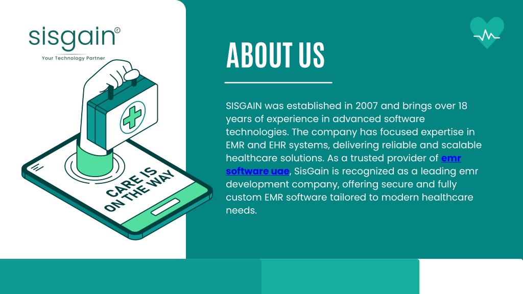 SISGAIN Software Companyu2019s expertise in EMR and EHR solutions, showcasing 18 years of experience in healthcare technology. It covers the companyu2019s capabilities in delivering scalable, secure, and customized healthcare platforms, positioning SisGain as a trusted emr software uae provider and leading emr development company offering advanced custom EMR and EHR solutions.