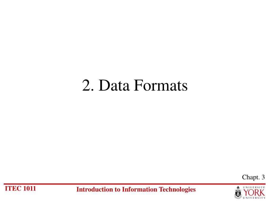2. Data Formats. Chapt. 3. Real World. Computer. Data. Data. Dear Mom:. Keyboard. 10110010…. Digital camera. 10110010…. Introduction. Examples. Input device. pp. 59.-61. Format must be appropriate.