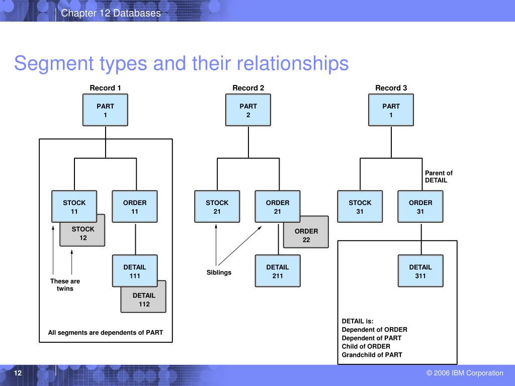 Chapter objectives • Be able to: • Explain how databases are used in a typical online business. • Describe two models for network connectivity for large systems. • List common DB2 data structures. • Compose simple SQL queries to run on z/OS. • Give an overview of application programming with DB2. • Describe the IMS DB components • List common IMS DB structures