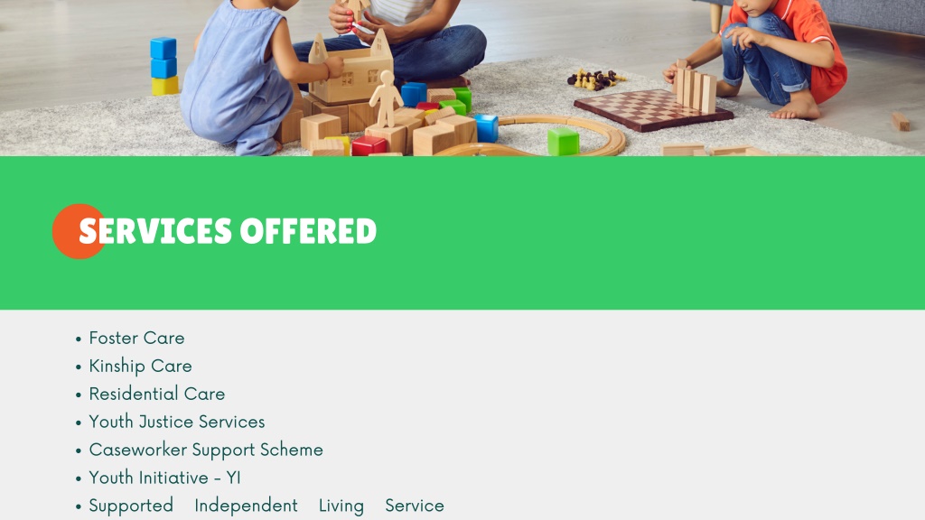 4. SERVICES OFFERED Foster Care Kinship Care Residential Care Youth Justice Services Caseworker Support Scheme Youth Initiative - YI Supported Independent Living Service