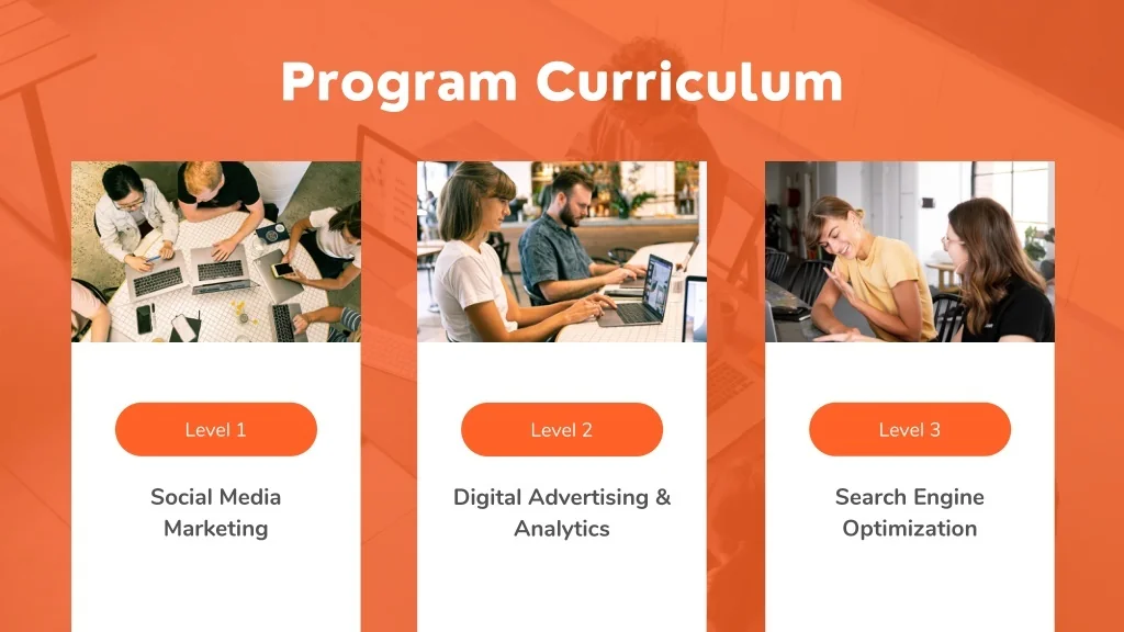 Program Curriculum Level 3 Level 1 Level 2 Search Engine Optimization Social Media Marketing Digital Advertising & Analytics