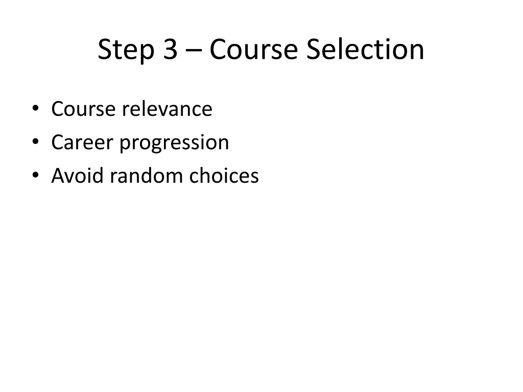 Step 3 – Course Selection • Course relevance • Career progression • Avoid random choices