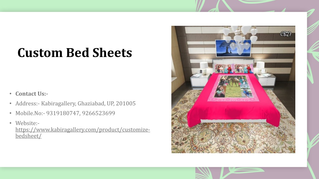 Custom Bed Sheets • Contact Us:- • Address:- Kabiragallery, Ghaziabad, UP, 201005 • Mobile.No:- 9319180747, 9266523699 • Website:- https://www.kabiragallery.com/product/customize-bedsheet/