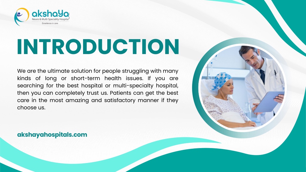 2. INTRODUCTION We are the ultimate solution for people struggling with many kinds of long or short-term health issues. If you are searching for the best hospital or multi-specialty hospital, then you can completely trust us. Patients can get the best care in the most amazing and satisfactory manner if they choose us. akshayahospitals.com