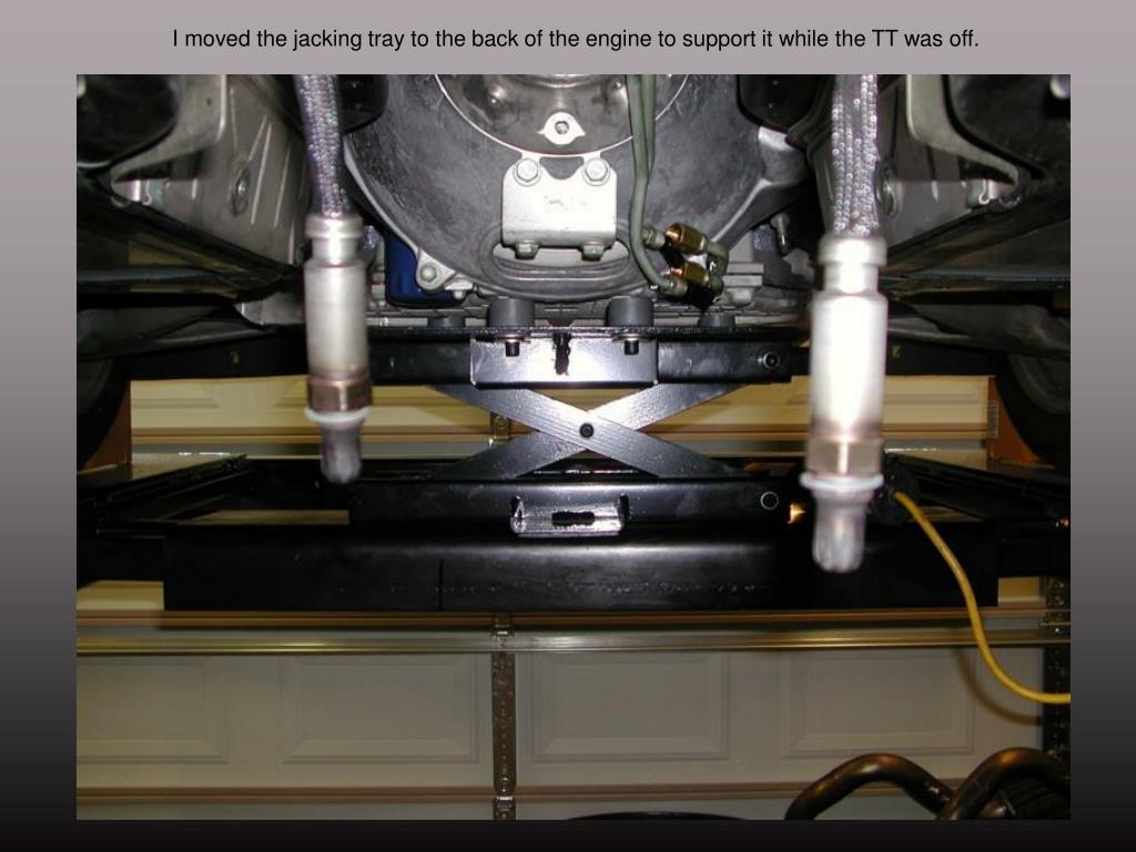 I moved the jacking tray to the back of the engine to support it while the TT was off.