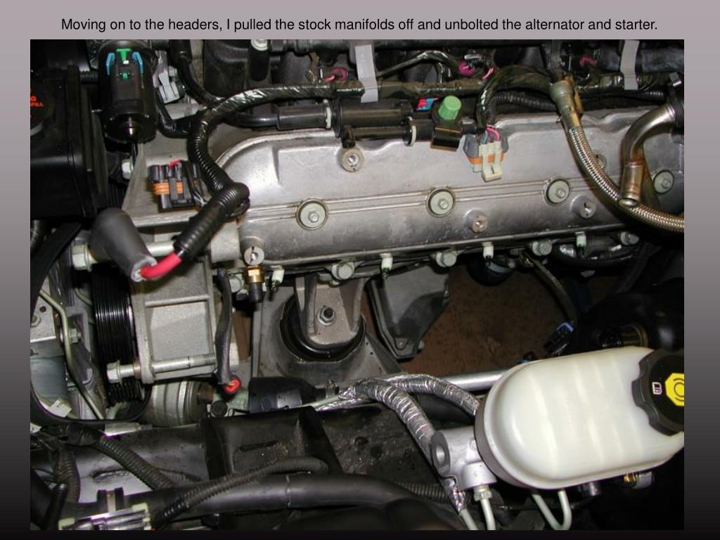 Moving on to the headers, I pulled the stock manifolds off and unbolted the alternator and starter.