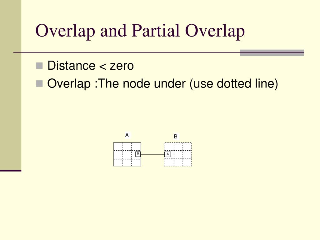 Overlap and Partial Overlap • Distance < zero • Overlap :The node under (use dotted line) A B B A