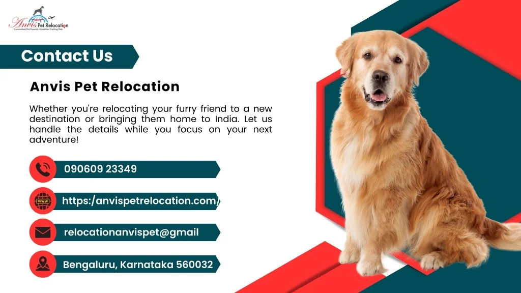 Contact Us Anvis Pet Relocation Whether you're relocating your furry friend to a new destination or bringing them home to India. Let us handle the details while you focus on your next adventure! 090609 23349 https:/anvispetrelocation.com/ relocationanvispet@gmail Bengaluru, Karnataka 560032