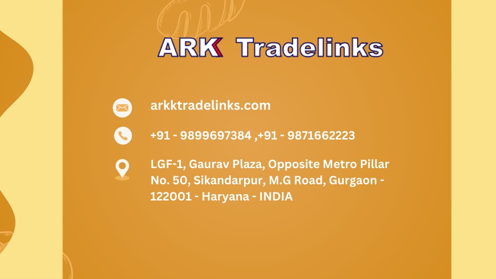 arkktradelinks.com +91 - 9899697384 ,+91 - 9871662223 LGF-1, Gaurav Plaza, Opposite Metro Pillar No. 50, Sikandarpur, M.G Road, Gurgaon - 122001 - Haryana - INDIA
