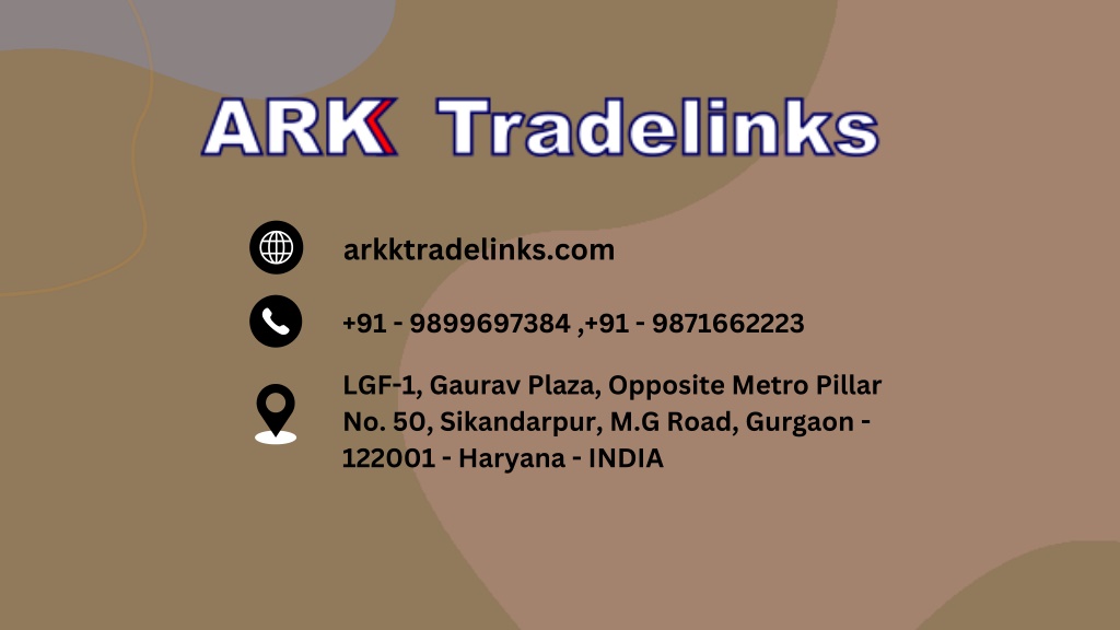 arkktradelinks.com +91 - 9899697384 ,+91 - 9871662223 LGF-1, Gaurav Plaza, Opposite Metro Pillar No. 50, Sikandarpur, M.G Road, Gurgaon - 122001 - Haryana - INDIA