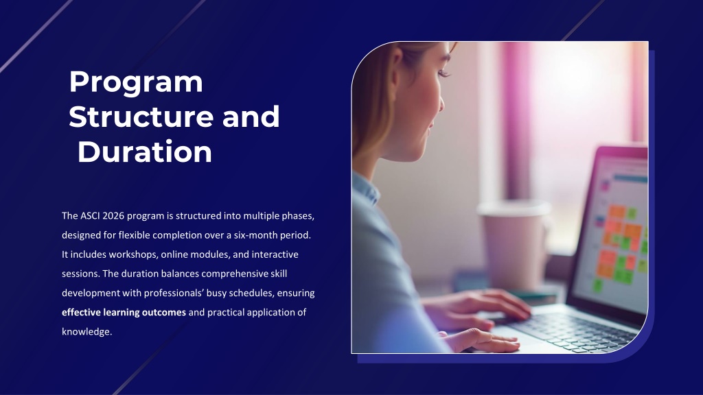6. The ASCI 2026 program is structured into multiple phases, designed for flexible completion over a six-month period. It includes workshops, online modules, and interactive sessions. The duration balances comprehensive skill development with professionals’ busy schedules, ensuring effective learning outcomes and practical application of knowledge. Program Structure and Duration