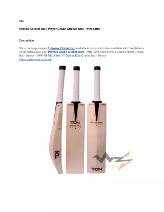 title Harrow Cricket bat | Player Grade Cricket bats - wizsports Description Shop our huge range of Harrow Cricket bat available in store and online available with free delivery on all orders over £50. Players Grade Cricket Bats · MRF Virat Kohli Genius Grand Edition Cricket Bat - Senior · MRF AB DE Villiers 17 Genius Elite Cricket Bat - Senior. https://wizsports.com.au/