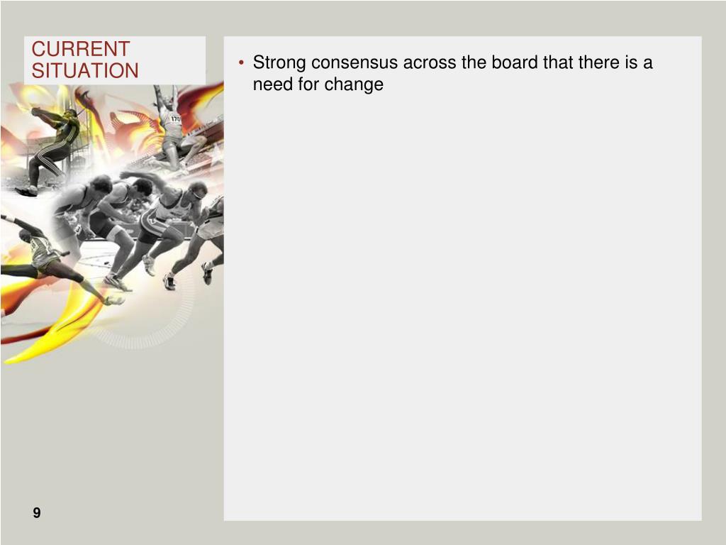 CURRENT SITUATION Strong consensus across the board that there is a need for change 9