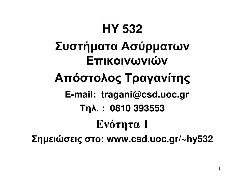 HY 532 Συστήματα Ασύρματων Επικοινωνιών Απόστολος Τραγανίτης E-mail: tragani@csd.uoc.gr Τηλ. : 0810 393553 Ενότητα 1 Σημειώσεις στο:www.csd.uoc.gr/~hy532