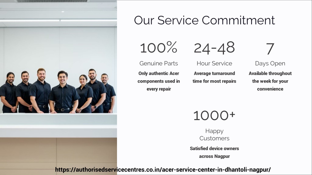 Our Service Commitment 100% 24-48 7 Genuine Parts Hour Service Days Open Only authentic Acer components used in every repair Average turnaround time for most repairs Available throughout the week for your convenience 1000+ Happy Customers Satisfied device owners across Nagpur https://authorisedservicecentres.co.in/acer-service-center-in-dhantoli-nagpur/