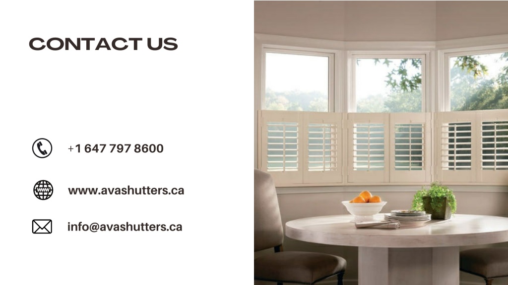 CONTACT US +1 647 797 8600 www.avashutters.ca info@avashutters.ca