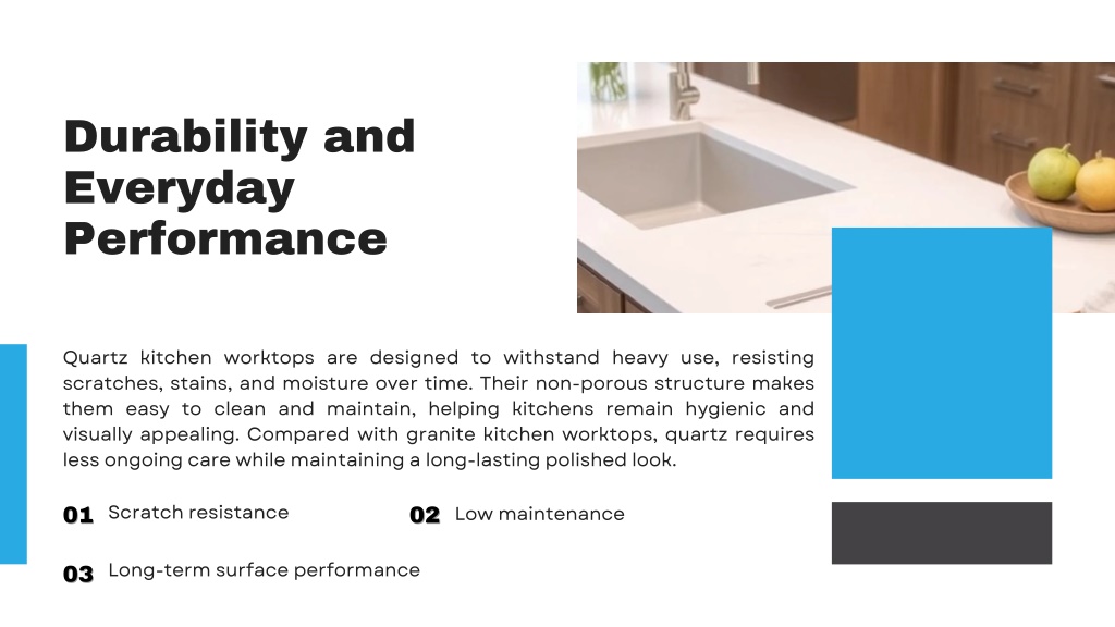 Long-Term Value for Modern Homes Quartz kitchen worktops add long-term value to modern homes by combining visual appeal with durability and practicality. Their ability to maintain appearance over time makes them a worthwhile investment for homeowners seeking performance. When compared to granite kitchen worktops, quartz offers a balance Quartz kitchen worktops add long-term value to modern homes by combining visual appeal with durability and practicality. Their ability to maintain appearance over time makes them a worthwhile investment for homeowners seeking performance. When compared to granite kitchen worktops, quartz offers a balance of elegance and convenience. of elegance and convenience. quality quality and and