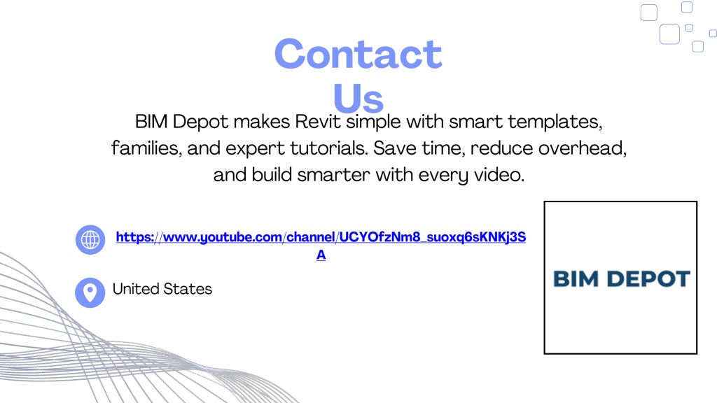 4. Contact Us BIM Depot makes Revit simple with smart templates, families, and expert tutorials. Save time, reduce overhead, and build smarter with every video. https://www.youtube.com/channel/UCYOfzNm8_suoxq6sKNKj3SA United States
