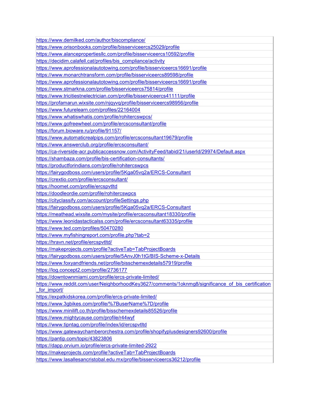 Top Profile creation Sites for Compliance sites https://www.heavyironjobs.com/employers/3824535-ercs-private-limited https://www.michellekennedyhairco.com/profile/kanikasharmabis40084/profile https://www.customvirtualoffice.com/profile/kanikasharmabis41572/profile https://app.wedonthavetime.org/profile/ercspvtltd https://www.hakshackwoodworks.com/profile/kanikasharmabis13668/profile https://www.davidrio.com/profile/kanikasharmabis23334/profile https://www.abanca.org/profile/kanikasharmabis33458/profile https://hire.digitalscholar.in/candidate/kanikasharmabis/ https://www.adswindowtint.com/profile/kanikasharmabis24792/profile https://www.chilliremovals.com.au/profile/kanikasharmabis16414/profile https://www.ukclassifieds.co.uk/user/profile/95919 https://www.lawfixer.com/3/business-law/ercs-private-limited https://yebble.com/profile/ercs-private-limited/ https://www.brokenchainsincorporated.com/profile/kanikasharmabis40654/profile https://www.beamng.com/members/biscrsercs.732802/ https://pinshape.com/users/8818876-kanikasharmabis https://triumph.srivenkateshwaraa.edu.in/profile/ercspvtltd https://www.carolinashungarianchurch.org/profile/bisserviceercs50034/profile https://www.vinamericas.com/profile/bisserviceercs57969/profile https://www.ltstesting.com/profile/bisserviceercs89907/profile https://www.slayawaywithus.com/profile/bisserviceercs66806/profile https://www.legalforgood.com/profile/bisserviceercs8770/profile https://www.blackcornerstones.com/profile/bisserviceercs33979/profile https://www.kenmorecricket.com.au/profile/bisserviceercs68868/profile https://www.pnwarachnids.com/profile/bisserviceercs56106/profile https://www.centrocapilarmg.com/profile/bisserviceercs95262/profile https://www.lfashow.com/profile/bisserviceercs54869/profile https://www.senceworld.com/profile/bisserviceercs86247/profile https://www.do3d.com/profile/bisserviceercs43136/profile https://www.sosouthernsoundkits.com/profile/bisserviceercs68807/profile https://www.jmriascos.space/profile/bisserviceercs11078/profile https://www.jerseyjos.com/profile/bisserviceercs30283/profile https://www.bullspitrosin.com/profile/bisserviceercs16993/profile https://www.solucioneseducativastc.com/profile/bisserviceercs80381/profile https://www.destinydentalap.com/profile/my/profile https://www.activco.studio/profile/bisserviceercs46830/profile https://productforindians.com/profile/ercspvtltd https://www.braidbabes.com/profile/bisserviceercs8293/profile https://www.letsdiskuss.com/user/biscertificationcertification2607 https://www.mamaganache.com/profile/bis-certification/profile https://www.americangirldollnews.com/profile/bisserviceercs62212/profile https://www.gthaloexpress.com/profile/bisserviceercs11797/profile https://www.cambodgemag.com/en/profile/bisserviceercs89324/profile https://www.pozible.com/profile/bis-compliance https://www.gocoax.com/profile/bis-certification/profile